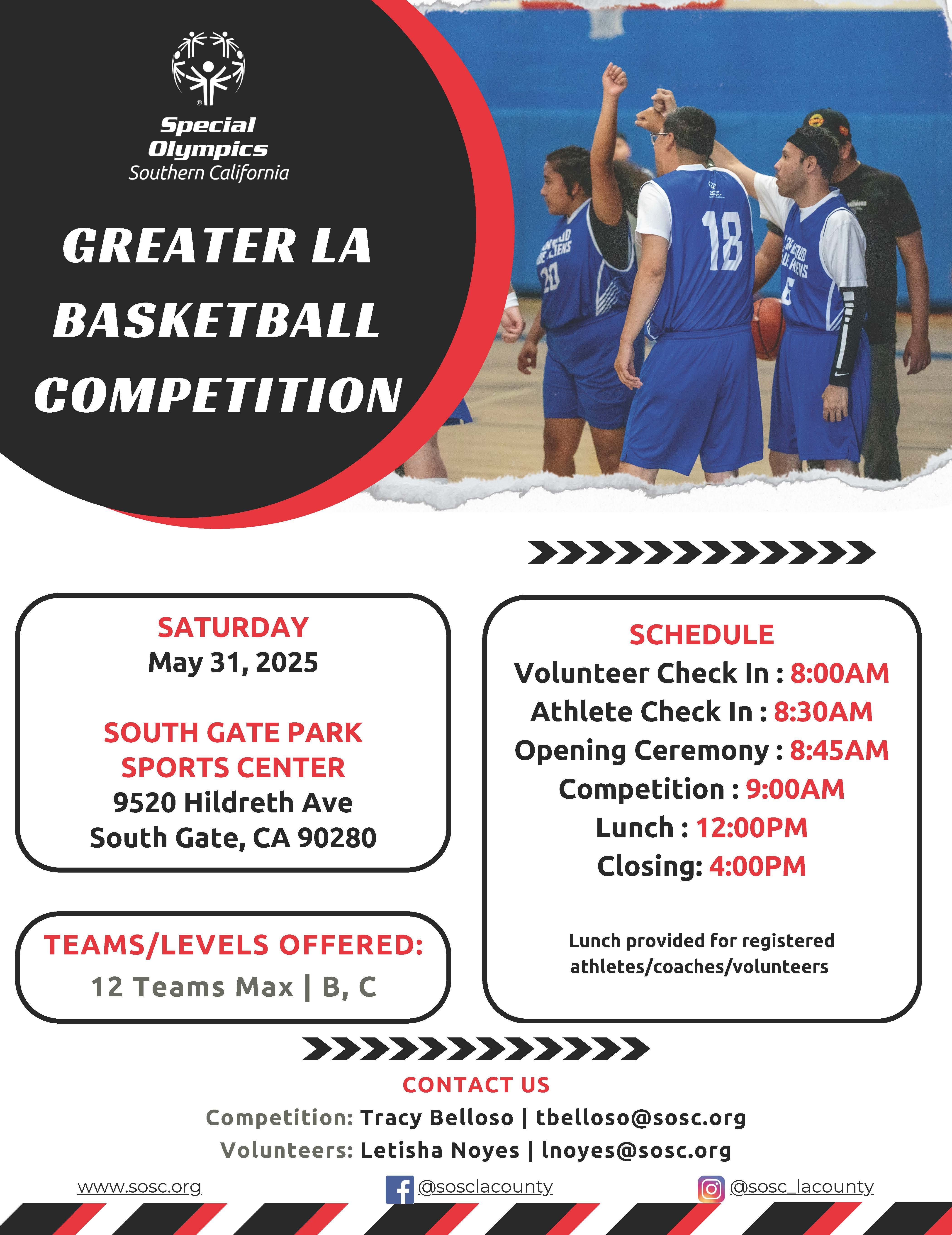 Reach for the Gold! Special Olympics Southern California athletes from Southeast Los Angeles and surrounding areas will compete in Basketball at the 2025 Greater LA Basketball Competition in South Gate.